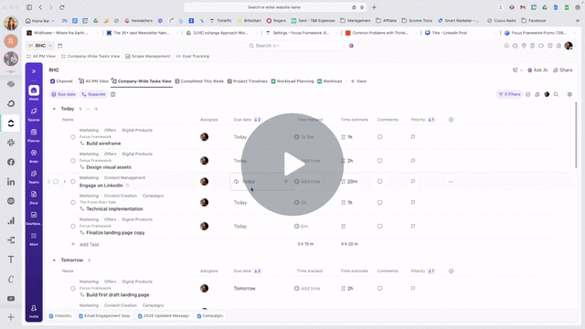 ClickUp just dropped version 4.0 & *spoiler*... something changedI swear, every tool I use got a whiff of that new year new me energy because it feels like they ALL decided to change their UX at the exact same time. But ClickUp? That's the only one I actually care about. ClickUp 4.0 is being pushed through, so obviously I had to give it a go. Although every part of me was like NOOOOOOOO bc you just never know what the heck they're gonna change. Since I literally JUST opted in days ago, this is definitely a to-be-continued topic, but here's what immediately jumped out to me: ⭐️ Favourites got a pretty cool upgradeRight away I noticed that my pinned favourites bar was straight up MISSING. If you've taken any of my courses or watched my YouTube videos, you've probably heard me talk about the favourites bar and the task tray at least once. Favourites bar = where I keep my go-to views + dashboards I use to run my business. Task tray = where I pin tasks and docs I'm actively working on (landing page copy, email drafts, whatever). I use this stuff every single day and rely on it heavily, so seeing that it disappeared made me panic for a second. But alas... it actually got kinda BETTER?Bc instead of having to separately pin your favourites bar AND your task tray (which honestly, no one knew how to do anyway), now... There's just ONE favourites option with 3 location options: side, top, and bottom. AKA: no more "task tray" option. This is a small thing that makes a big difference when you use ClickUp *for everything*For me, the extent of "using" Asana or Teamwork was popping in to check + update tasks, then leave. When you're fully experiencing ClickUp the way it's meant to be used, every single thing you do happens in ClickUp. Which means you NEED easy ways to get back to the stuff you're actively using. Otherwise ClickUp itself VERY EASILY becomes part of the overwhelmI swear, it's the smallest core features of ClickUp that make the biggest difference in whether it supports or stresses you out. Here's a quick walkthrough of the *brand new* ClickUp 4.0 favourites: (Oh, and if you want all 5 shortcuts that make navigating ClickUp actually feel *dare I say* easy, I made a whole video about that too) XO, Robyn Robyn Henke Did someone forward this to you? Subscribe here.