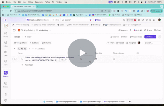 I'd also argue that you should include a brainstorming, analysis, mood boarding step as well, to get the ball rolling. Now repeat the exercise for each of the projects, and you can VERY quickly see how the scope of work comes to light. Start adding time estimates to each of those tasks, and watch it roll up into HOURS AND HOURS of your time. ⏱️ I put together a quick 2 minute demo of what this actually looks like in practice, which is much more impactful to see than read. ⬇️ That's when SEEING that you don't have time for EXTRA becomes OBVIOUS. You see it. You say it. SORTED. Your "protect your time" cheerleader 4ever, Robyn Robyn Henke Subscribe on YouTube Do Your Worst 💔 Unsubscribe P.S. Everything I just walked through? That's Focus Framework territory: how to identify what's actually a project, how to set it up in ClickUp so the work is visible and manageable, and how to use time estimates to protect your sanity. No templates, just the strategic thinking you need to build a system that actually works for you → Here for you |