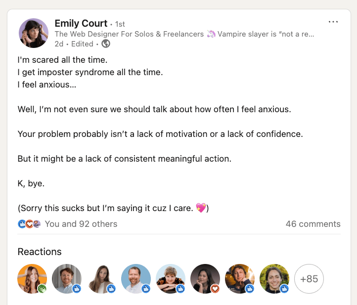 No more vague ClickUp tutorials. I only share what I use myself every. single. day. over my decade of freelancing experience. You can expect relatable stories and uses for ClickUp you'll get to building ASAP.